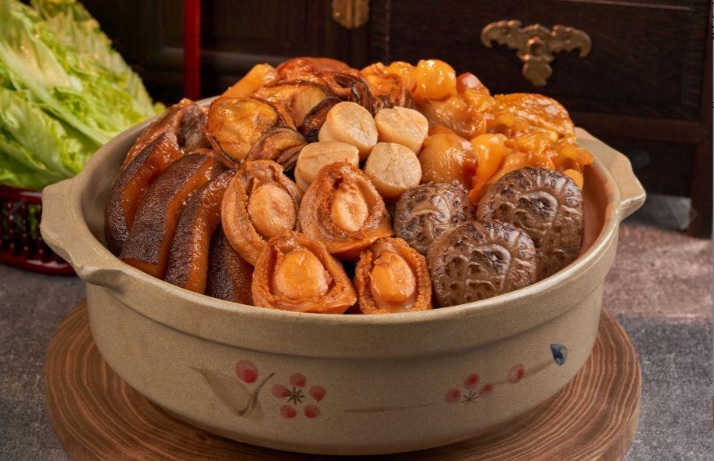 提到賀年食品又點可以無盆菜,尤其今年農曆新年若然受限聚令持續,相信大家年三十都無法出外用膳,呢個時候最適合提早預定高質盆菜,全家人圍埋一齊品嚐由皇家太平洋酒店出品「鮑參海味壹品鍋」(優惠價:$1348),食材豐富又名貴,包括:鮑魚、花膠、刺參、瑤柱脯、蠔豉、花菇、蓮藕、津白和日本大根,再送你指定紅酒 / 氣泡酒,今個年三十盡情暢飲與家人迎接牛年到來。