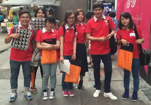 永安旅遊愛心義工隊於旺角進行賣旗籌款。