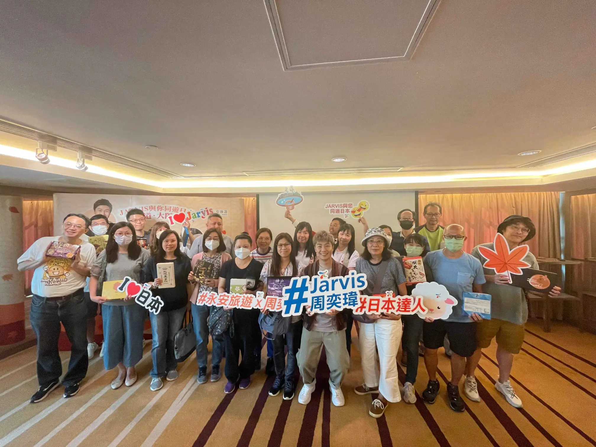 永安旅遊準備20份日本和果子手信,勝出問答遊戲得獎者們與周奕瑋(Jarvis)拍照留念