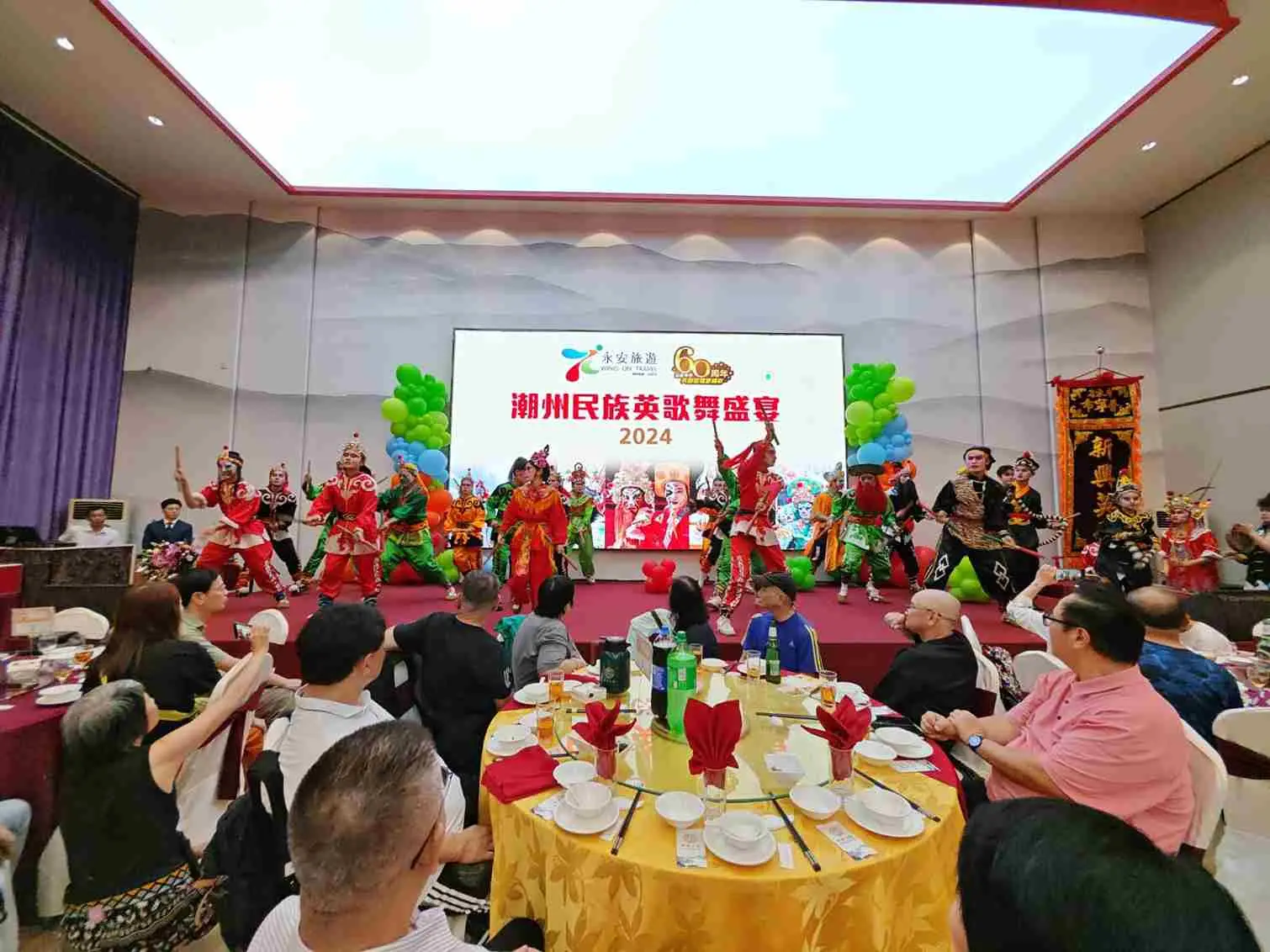 是次活動,由潮州官方全力支持,特別為永安旅遊貴賓舉辦「民族英歌舞迎潮州千人盛宴」。不但可以享用十二道傳統潮州菜,更可以在席間欣賞國家級非物質文化遺產「英歌舞」 ,舞者動作奔放、陽剛威武,配合鼓聲、英歌槌演出,表演氣勢磅礴,展現了潮州獨有的平安吉祥氛圍,為永安貴賓送上祝福。除了表演,晚宴更設有抽獎環節,團友們都玩得不亦樂乎,氣氛高漲。