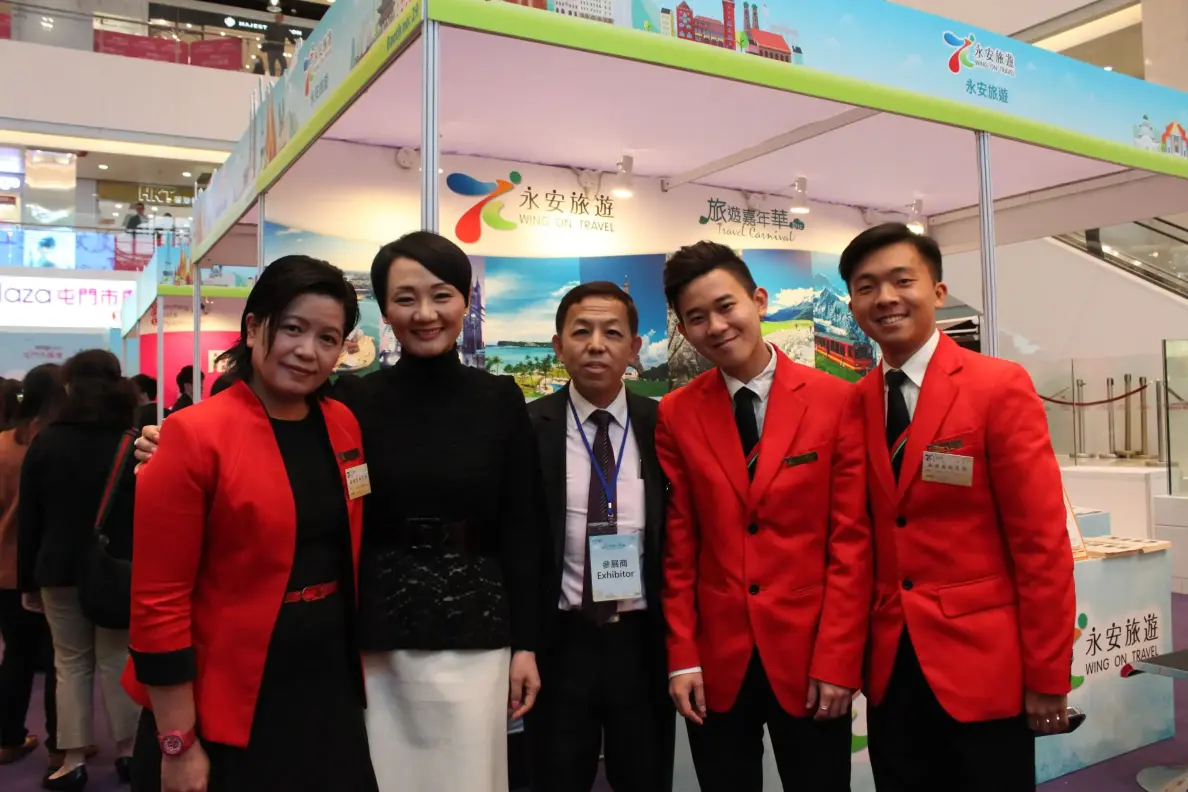 永安旅遊董事兼行政總裁梁港蘭親身前往展覽會場支持,並與前線同事合照留念。