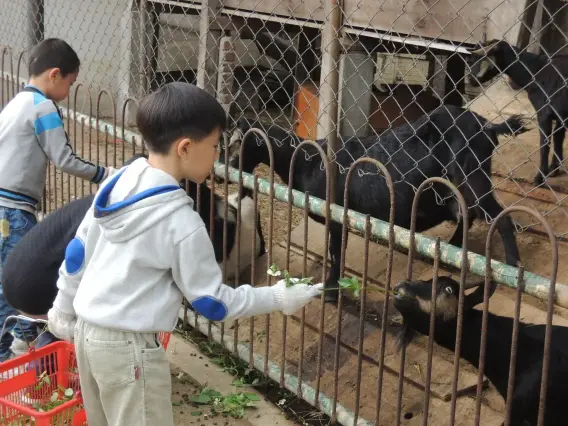 小朋友親手餵飼小動物,近距離接觸大自然,從中培養愛心。