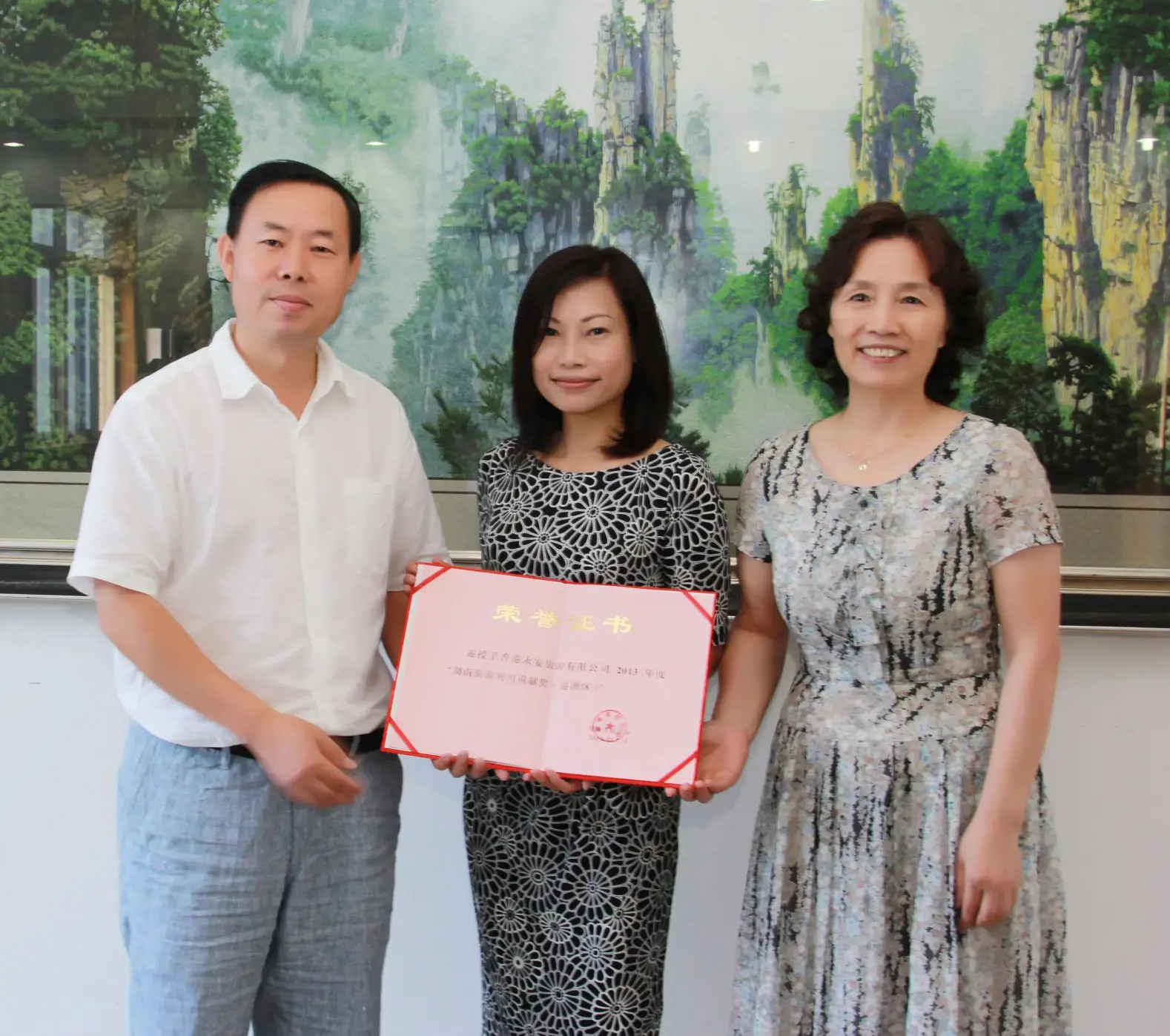 由湖南省旅遊局副局長高揚先先生(左)及副巡視員卜越輝小姐(右)頒發「湖南旅遊突出貢獻獎」,