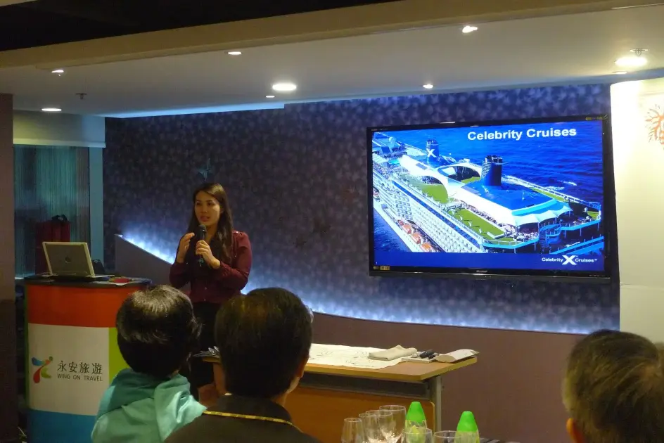 菁英遊輪代表李卓瑤小姐向在場會員介紹郵輪餐飲及娛樂設施。