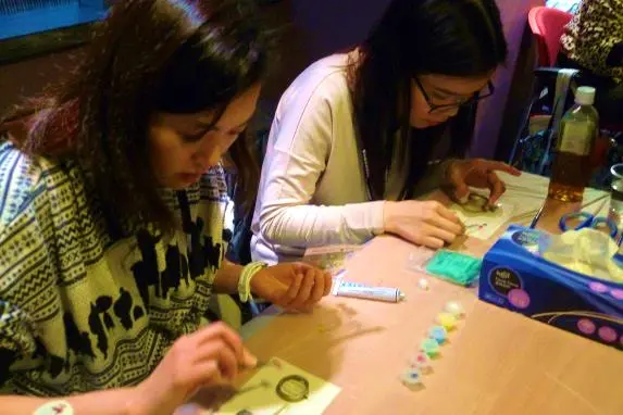會員認真地製作小飾物