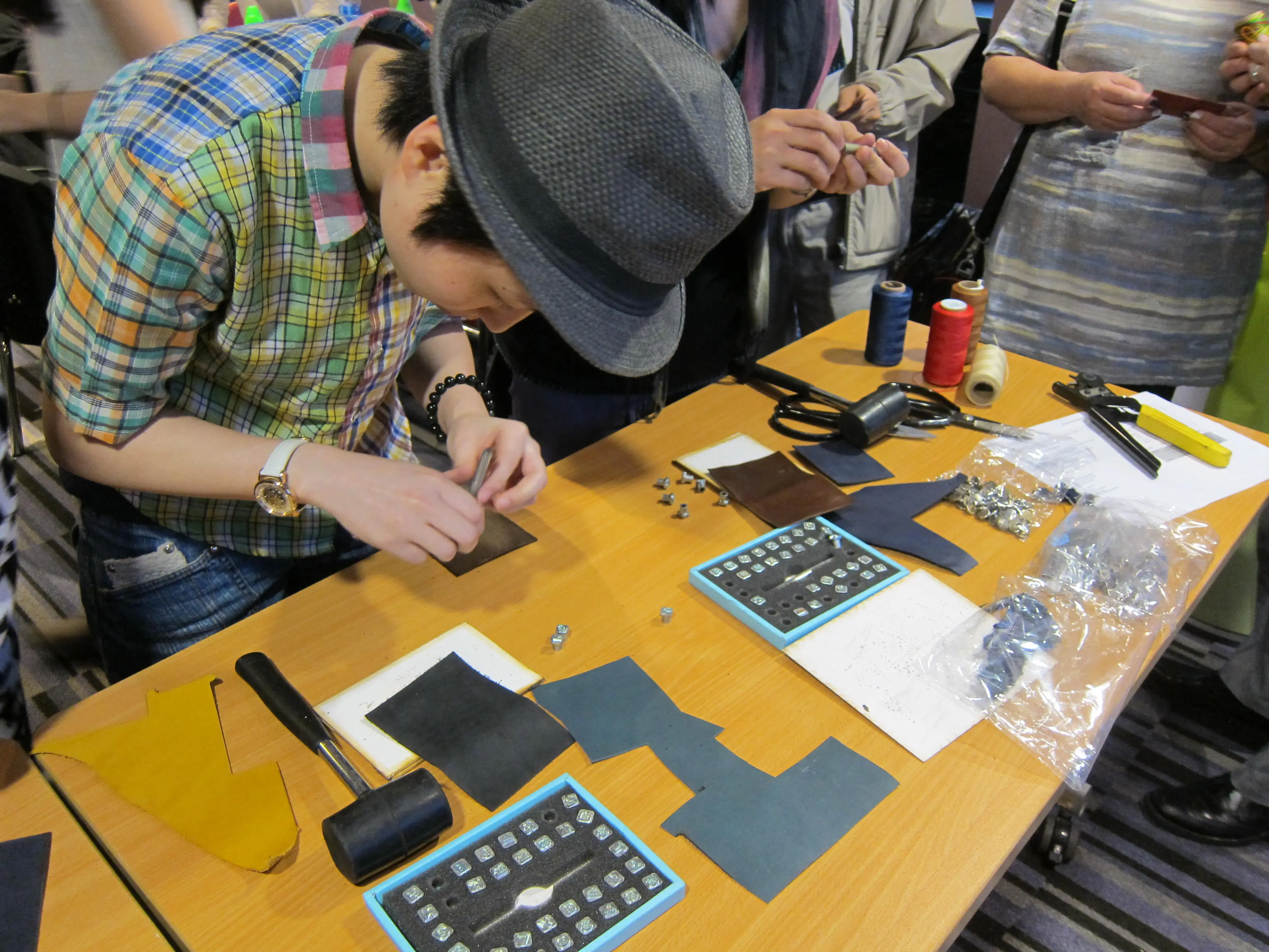 會員專心製作皮革製品