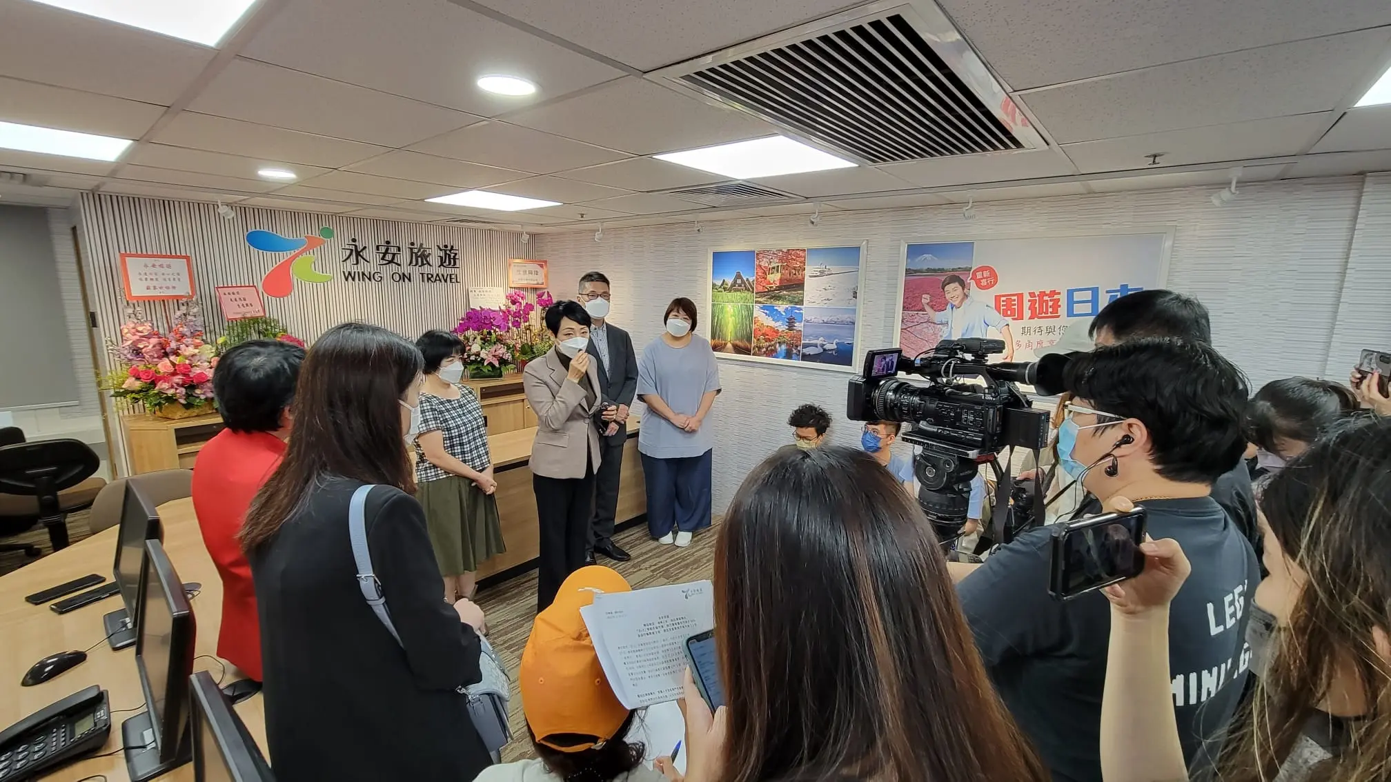 永安旅遊董事兼行政總裁梁港蘭、永安旅遊副總經理馬世文、永安旅遊助理總經理(長線及郵輪)鄭譚英及永安旅遊助理總經理(亞州線)黃燕梅代表公司接受傳媒訪問。
