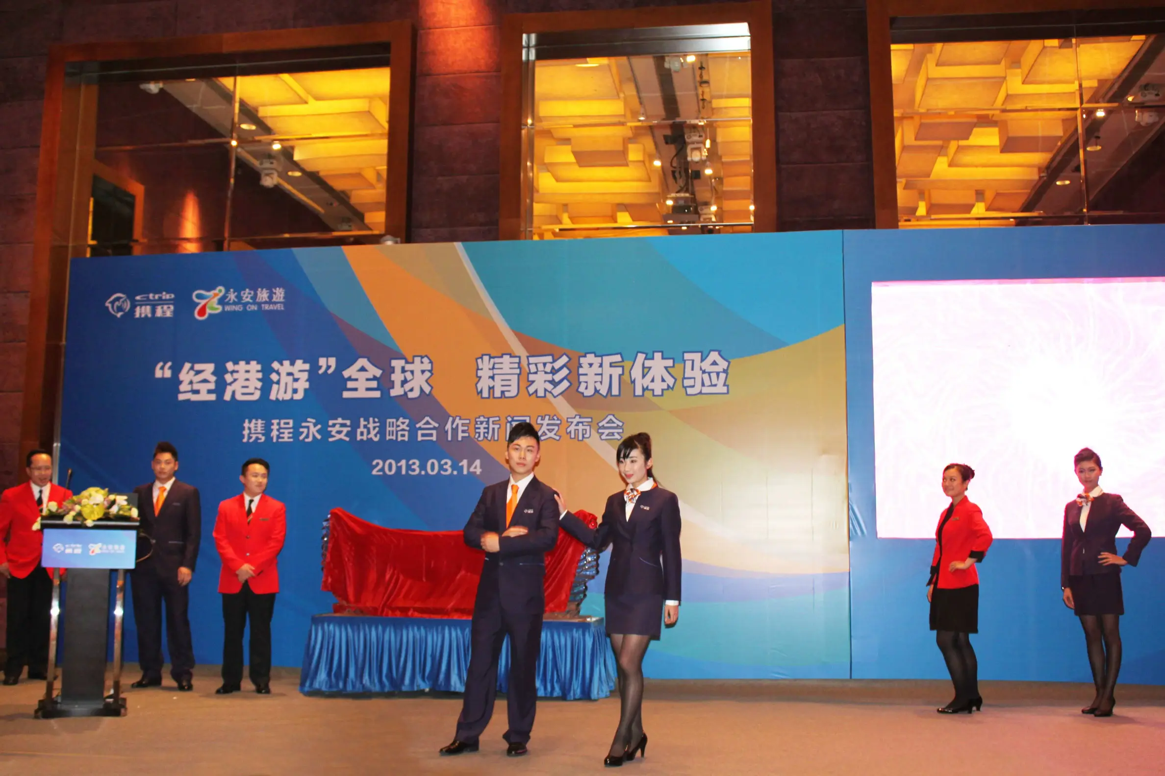 永安旅遊及攜程旅行網的專業領隊一同合作表演,為新聞發佈會揭開序幕