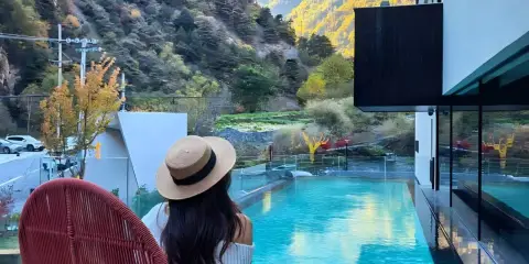 半山軒景●闊博●瓊熙私湯隱墅(九寨溝風景區網紅打卡點店)