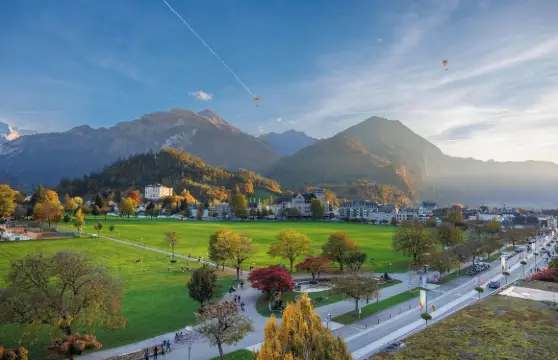 因特拉肯位於瑞士著名風景區少女峰的山腳下,是進入伯爾尼高地的門戶。這裡既能泛舟湖上觀光,也能乘高空纜車登上阿爾卑斯山的高峰,一覽少女峰天然奇觀的風采,加之整年氣候溫和,環境優美,因此成為了歐洲著名的度假勝地。