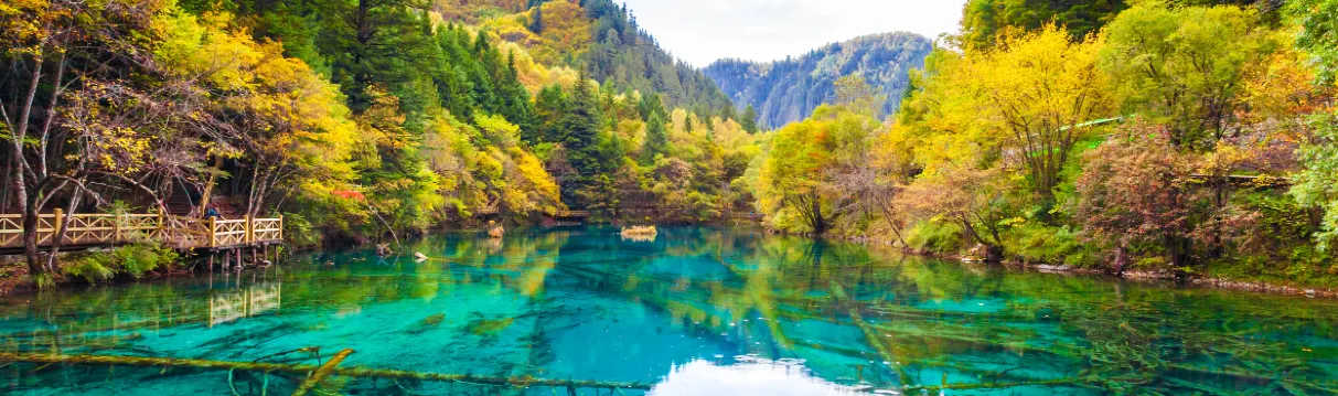 九寨溝是中國著名的風景區,在四川省的阿壩州。景區內處處都是原始森林,還有數量眾多湖泊,這裡的湖泊面積都不太大,被稱為“海”。九寨溝的各個“海”,水質都非常的清澈,在植物和陽光的承托下,展現出不同的顏色,非常的美麗。九寨溝屬於高原氣候,早晚的溫差大,遊玩時請攜帶保暖的衣物。