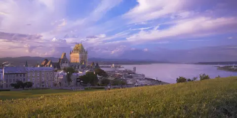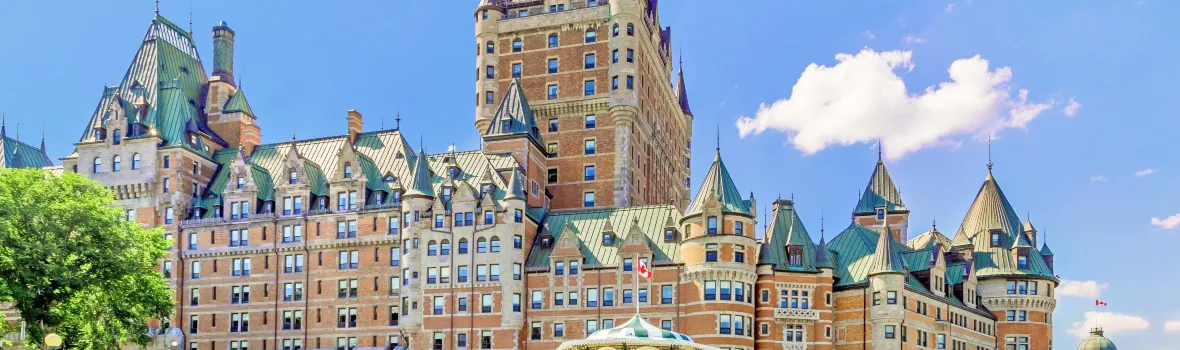 魁北克市位於聖勞倫斯河與聖查爾斯河匯合處,是加拿大第七大城市及魁北克省省會,也是加拿大東部重要的港口。魁北克市是墨西哥以北唯一留有古老城牆的北美洲城市。境內的著名旅遊景點有國家戰爭公園、聖母瑪麗亞宮、星型城堡、古堡大酒店、蒙特摩倫斯瀑布等。