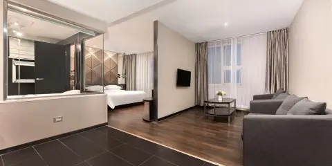在濟南酒店,酒店設計不滿意。bathroom沒有門及牆。(只用一塊鏡子隔住。)沒有私隱。 沐浴後,要在外面更衣等等事項,在廳可以見到。 由於床與bathroom中間沒有牆,也沒有門,bathroom 燈光會影響房間。晚上睡眠時,我要用毛巾遮蓋着, 這類型的酒店,建議不適合旅行團的人士。 忘記影相。 晚上睡覺時,我要用毛巾遮掩某些可以透光的空位。