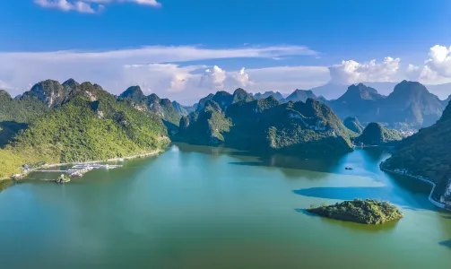 上林縣隸屬於廣西壯族自治區南寧市,位於廣西中部,大明山東麓。大龍湖景區位於上林縣西燕鎮,大龍湖被群山環抱,擁有迷人的喀斯特地貌景觀。還可以進入湖岸邊的大龍洞參觀溶洞。在上林縣城東北部的三裡洋渡風景區,可以欣賞到原生態的田園風光。另外還有金蓮湖、大明山龍頭峽谷等自然景區和舜婆山遺址、九龍窯遺址等古遺跡。