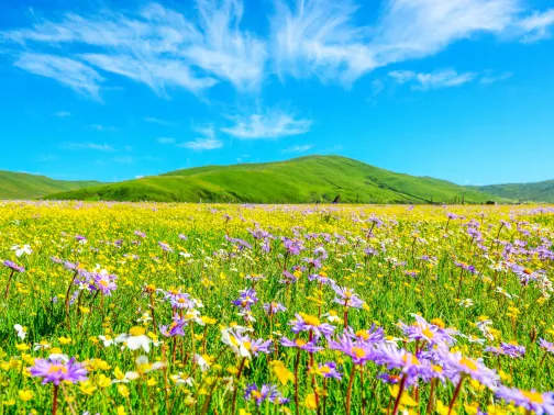若爾蓋縣隸屬阿壩藏族羌族自治州,地處青藏高原東北邊緣,位於四川省北部。素有“川西北高原的綠洲”之稱,在《中國國家地理》評選風景美的六大沼澤濕地中,若爾蓋位列首位。境內有著壯觀的黃河九曲第一灣,盛夏時節花開成海的若爾蓋熱爾大草原。人們可以在這可品嚐到正宗的奶酷餅、喝酥油茶、吃烤全羊,與當地民族人民一起談笑,其樂融融,妙趣無窮。