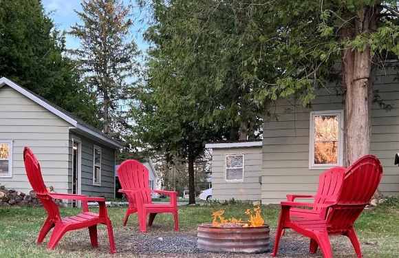 River Pines~Downtown Waterfront Wildlife Watching!Firepit,Snowmobile,2 King Bds