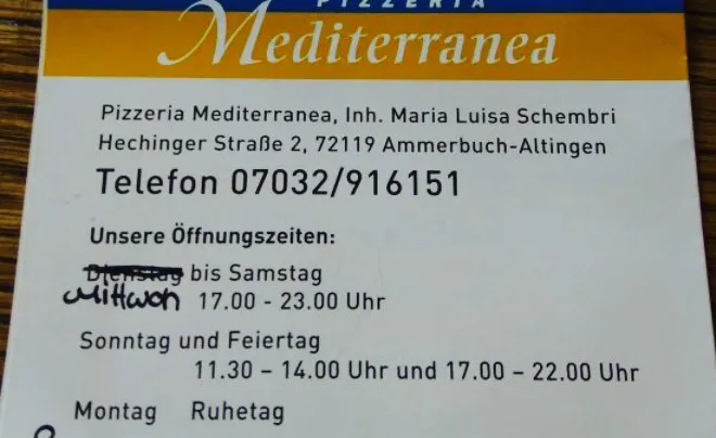 目的地探索 > 歐洲 > 德國 > 安姆爾巴克 > 餐廳 > Pizzeria Mediterranea