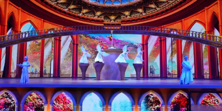 西安華夏文旅大劇院作為華夏文旅西安度假區項目的地標建築,設計為一座長142米,寬128米,高約50米的大型橢球體建築物,可容納3000人同時觀看演出。劇場中央巧妙設計並修建一座可移動觀眾席,打破了世界單一舞台演出模式,通過旋轉行走式看台將觀眾送至觀演位置,帶給觀眾全新的視聽享受。