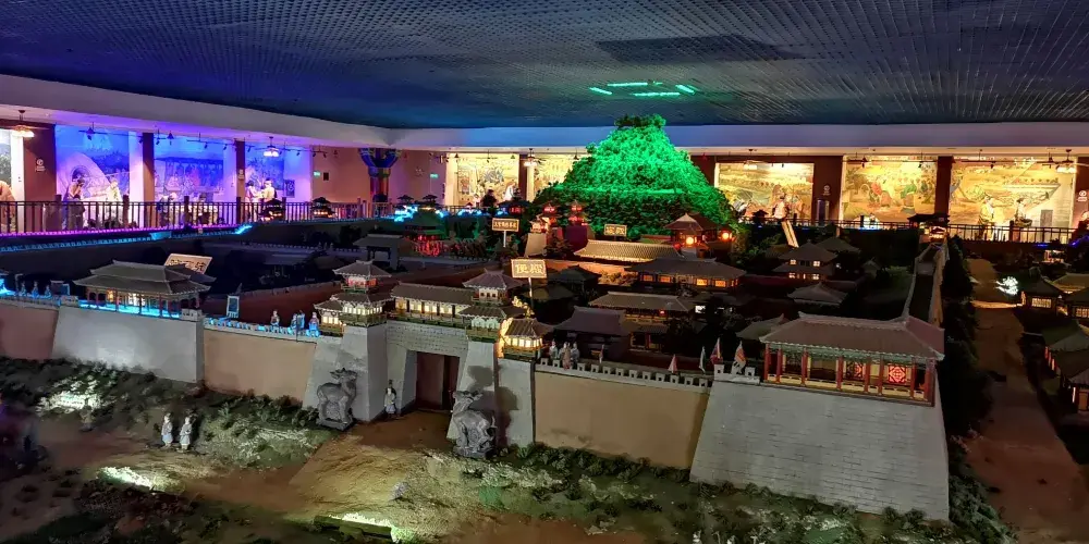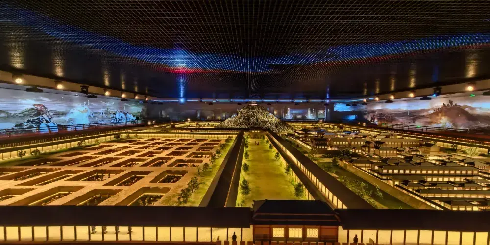 秦陵地宮,是現代人們根據漢代歷史學家司馬遷對歷史上秦陵地宮的描述所修建的。秦陵地宮向我們展示了兩千多年前秦始皇陵墓的輝煌氣勢。在這裡你能看到260平方米的大型沙盤,復原了秦陵封土、城牆、陪葬坑等建築物。在秦陵地宮的地下部分,設有墓道與耳室,裡面有仿製的古代車馬,還有不少浮雕,上面刻著秦始皇時期的重要大臣。