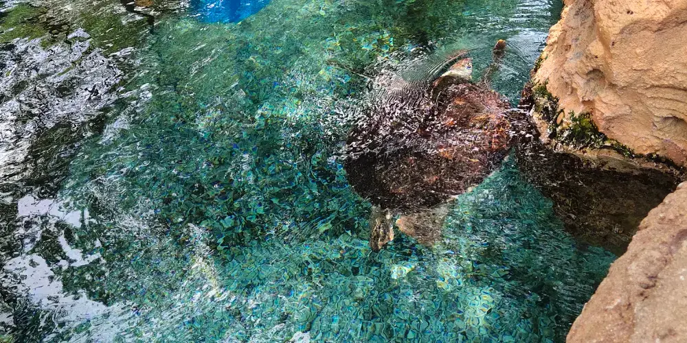 廣州海洋館佔地面積約1.6萬平方米,總建築面積約2萬平方米,由雨林探祕、奇幻之境、未來海、精靈海灣四大主題分區組成,是集展示、觀賞、科普和教育為一體的多功能海洋館。館內展示的海洋生物多達300餘種,近萬條海洋魚類。在這裏可以觀賞到兇猛的“沙虎鯊 ”、靈動可愛的“瓶鼻海豚”、珍稀“斑海豹”“綠海龜”及有“海中金絲雀”之稱的白鯨等;淡水魚之一巨巴西骨舌魚、以及珠江水系原生態的鯢、卷口魚、胭脂魚等淡水魚類。