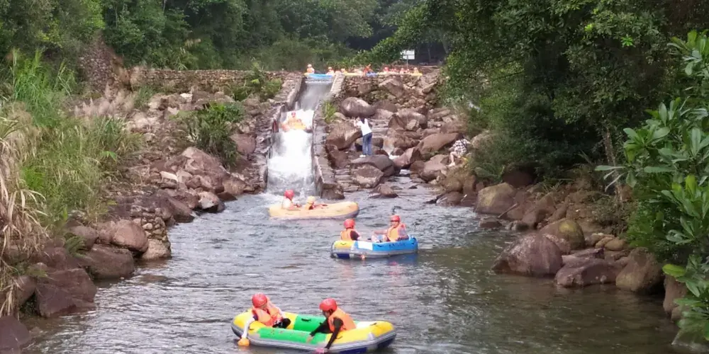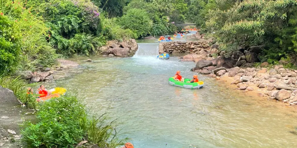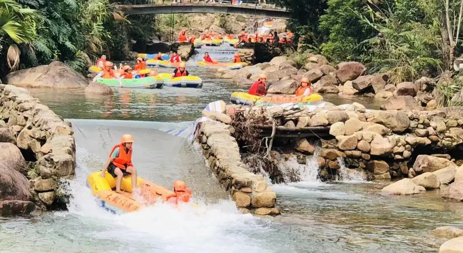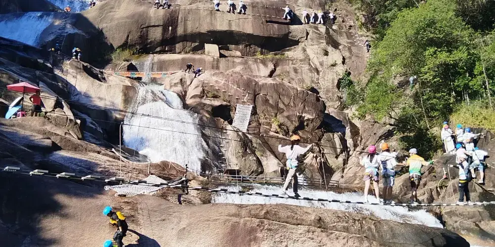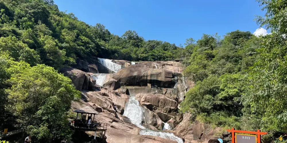 大豐門風景區是錦繡香江集團旗下項目,大豐門景區像一塊碧綠的翡翠鑲嵌在白水仙瀑景區與南昆山景區之間,北回歸線穿越其中,面積達38平方公里。身臨其中,可以「遠眺白水仙瀑之雄、近攬南昆山脈之秀」,這裡遍佈奇峰秀水、峽谷激流、森林湖泊、冰臼奇石,山泉瀑布隨處可見,景區有瀑布飛拉達攀岩、峽谷溯溪、極限漂流、嶺南五色湖、大自然秘境沙灘、皮划艇漿板、峽谷溪降等項目,成為了廣州增城知名遊玩的景區之一。