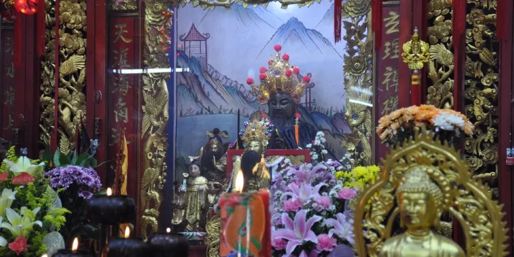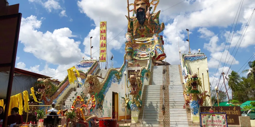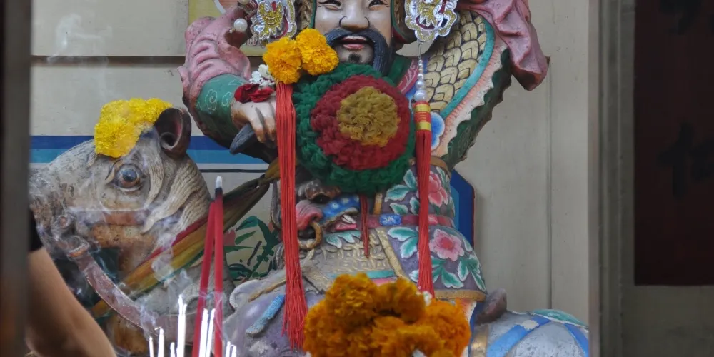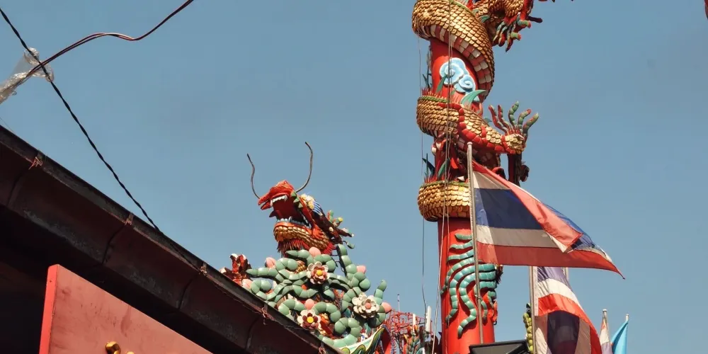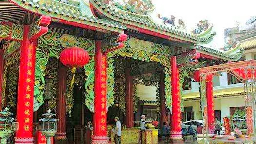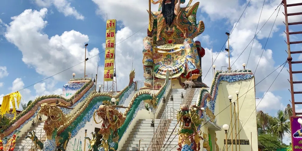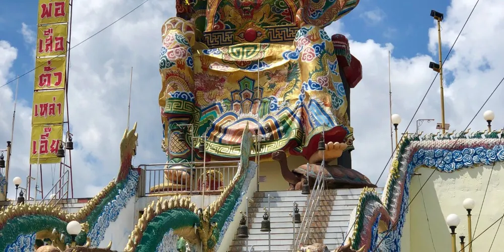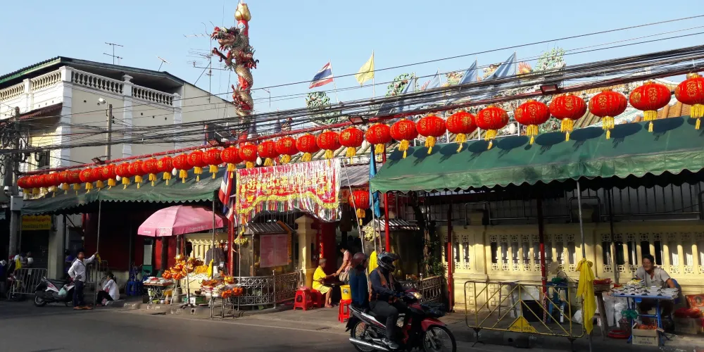 玄天上帝廟,華人一般稱為四枋廠(ถนนตะนาว )玄天上帝廟。現存廟宇建於拉瑪五世時期(1868-1910),潮州木構形式,經典的嵌瓷屋頂遍布歷史故事的雕塑,山門壁堵的嵌瓷也頗有何金龍的味道。