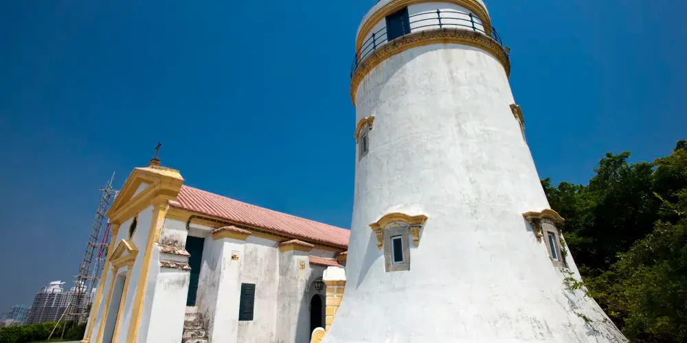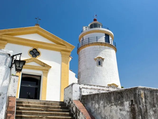 聖母雪地教堂是望洋台上最老的建築,教堂主色為白色,配黃色線條點綴,具有17世紀葡萄牙修院的建築風格。1996年在對教堂複修時,恢複了教堂和廳院的原貌,並在教堂的牆上發現被暗藏了很久的壁畫遺迹。這批古老壁畫糅合了中西文化與藝術的特點,在華南地區屬罕見之藝術作品。壁畫繪有:聖母瑪利亞、帕多瓦或裡斯本的聖安多尼、獅子、雙頭鷹與牡丹等圖案,極具藝術價值與觀賞性。