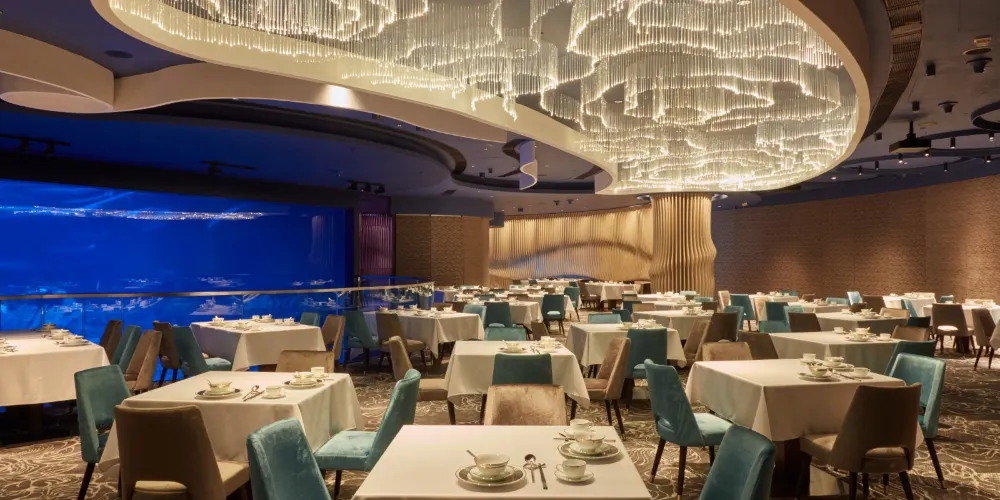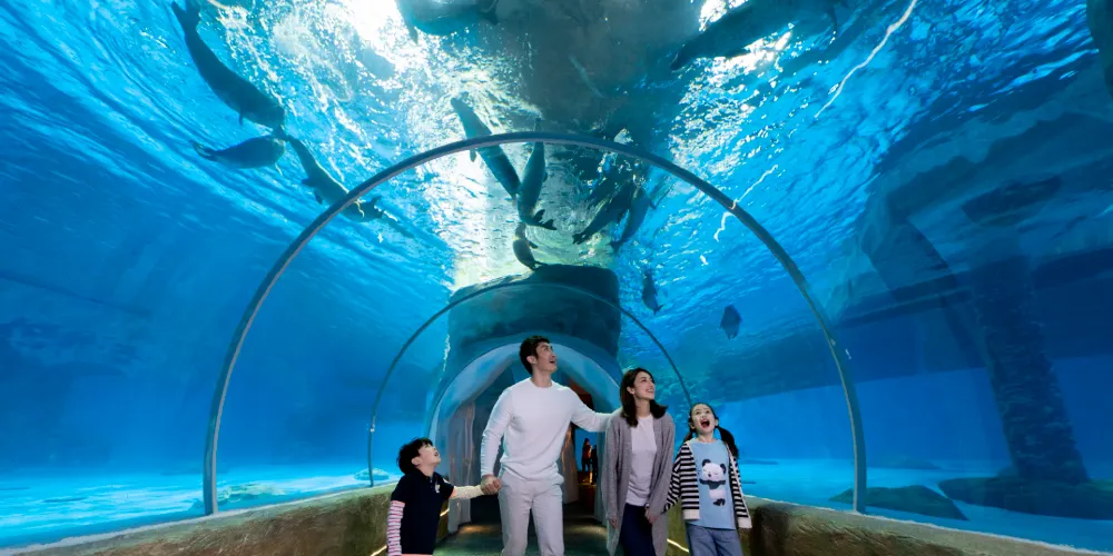 △ 海洋奇觀-名列世界十大水族館之一,是全球第9大的水族館。館內更設直徑達5.5米的觀賞圓頂,讓遊客探視水底世界。遊客亦能到達高8米、闊13米的巨型觀賞屏,一次過目睹館內所有魚類。雙龍奇緣,位於人工湖內,為全球首座360度的全景水幕,噴泉使用大量直上噴泉造成大水幕,大水幕外設有水火相容噴泉。