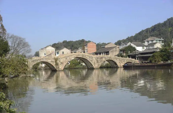 寺前橋街位於温嶺市的新河鎮,橫跨金清港,與兩岸街道相連,寺前橋為五孔橋,但橋身既不是弧形也不是平路,而是罕見的多邊形拼接,扶欄是精美的花卉、鳥獸、獅子、壽字圖案,經過千萬人的觸碰現在已光滑油亮。