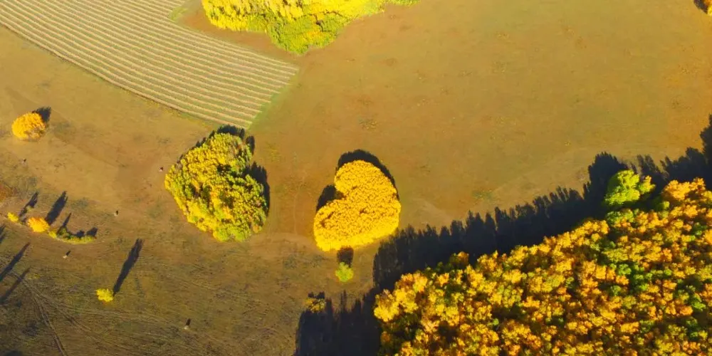 愛情谷,相傳是數千年前的一對真心相愛的青年男女,為沖破來自家庭門第的阻撓而離家出走,走到這裏時已經饑寒交迫,最後相擁長眠於此,化身為兩片相依相守的心形森林。站在觀景點“愛情天台”上,在廣袤無垠的天空與草原之間,在這份堅守的愛情森林之前,見證戀人們許下長相廝守的誓言,這裏被稱為“中國極北的愛情祕境”。