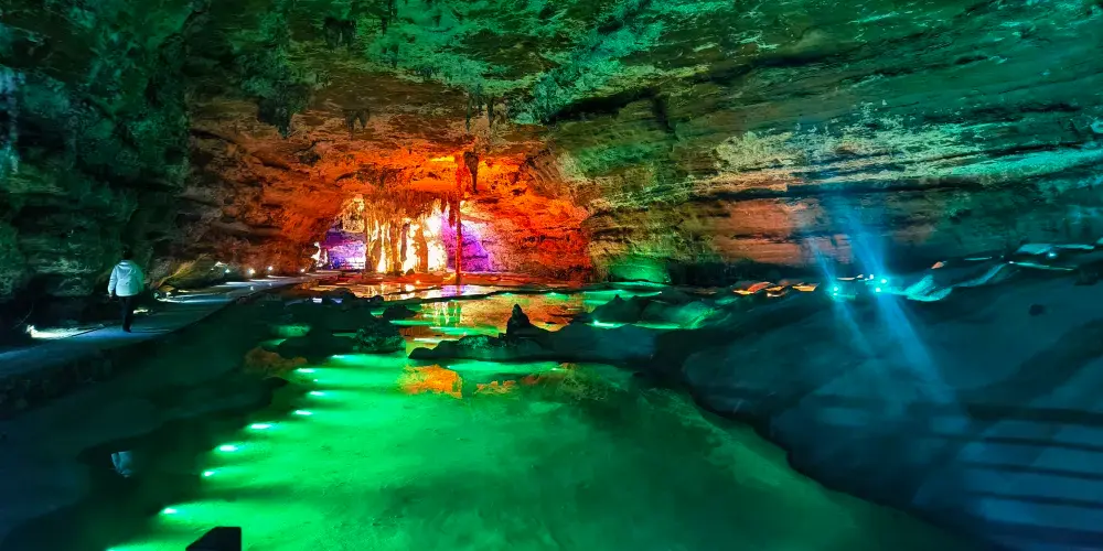 十二背後·雙河洞景區下轄地下河谷園區、地下裂縫園區、銀河洞園區等景區項目,是集旅遊觀光、洞穴探險、溫泉度假、戶外徒步、科學研究、科普教育等多位一體的綜合旅遊區,被中央電視台喻為「喀斯特天然洞穴博物館」、「中國地心之門」。