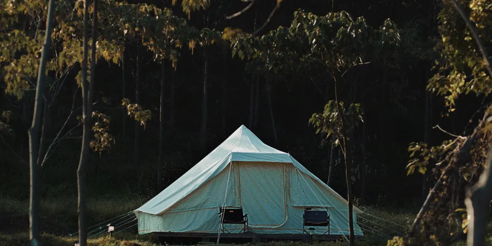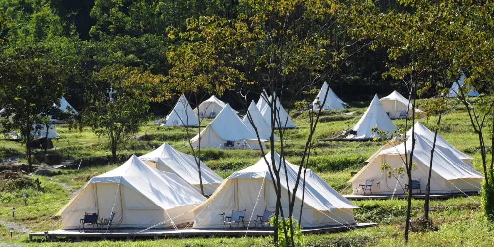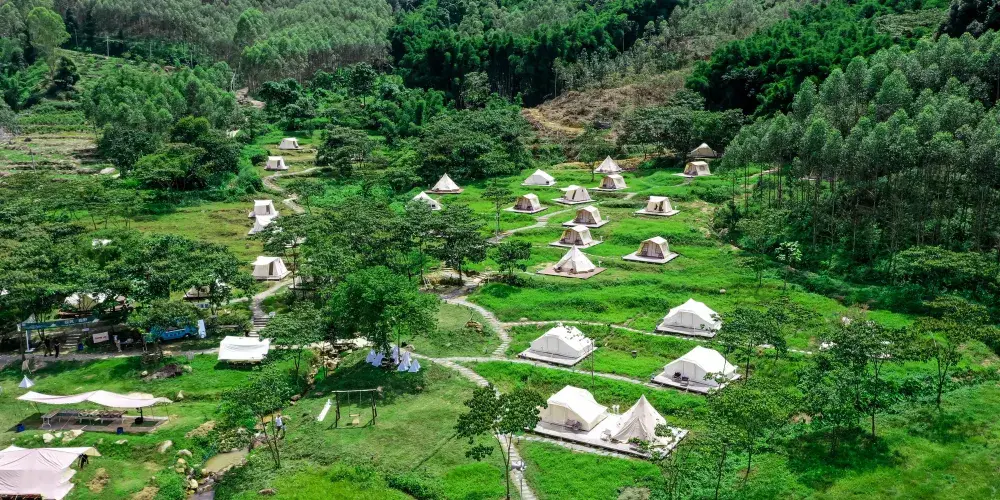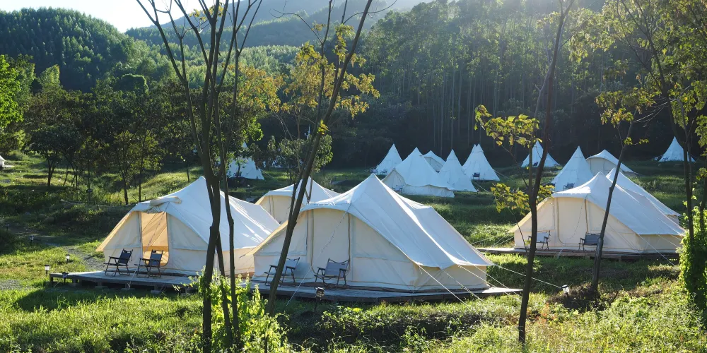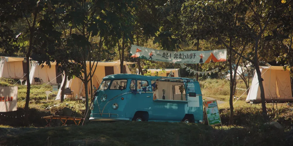 營地坐落在山谷中,這裡有古村、樹蔭、綠地、溪流……在這裏,自然和大地指引着前行的道路,森林和草地編制着夢幻之景。在這裏,不需要自己準備繁瑣的露營裝備、零碎的烹飪食材,拎上簡單的行囊來到山谷裏紮營兩日,與大自然撞個滿懷。