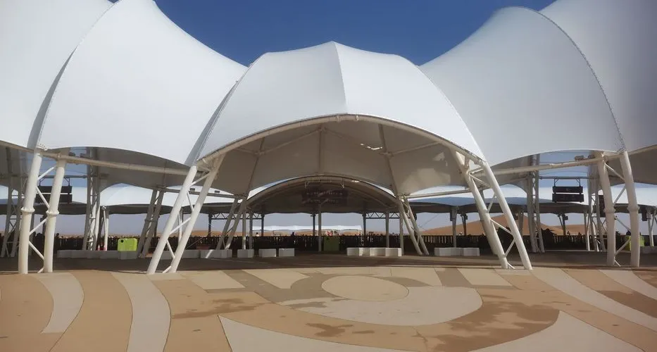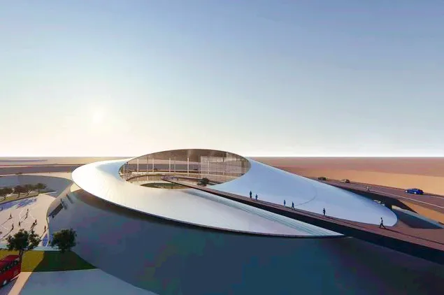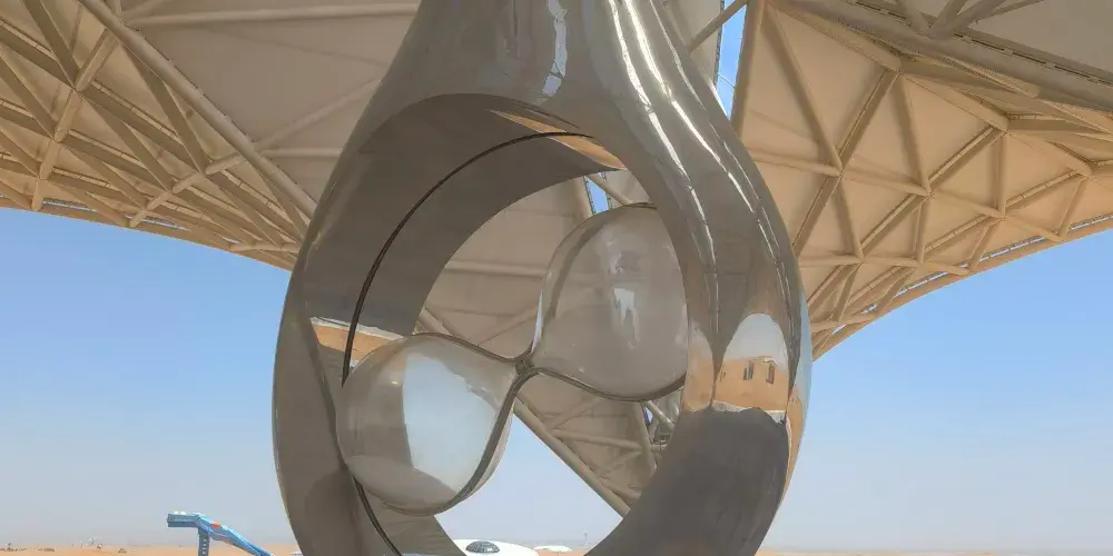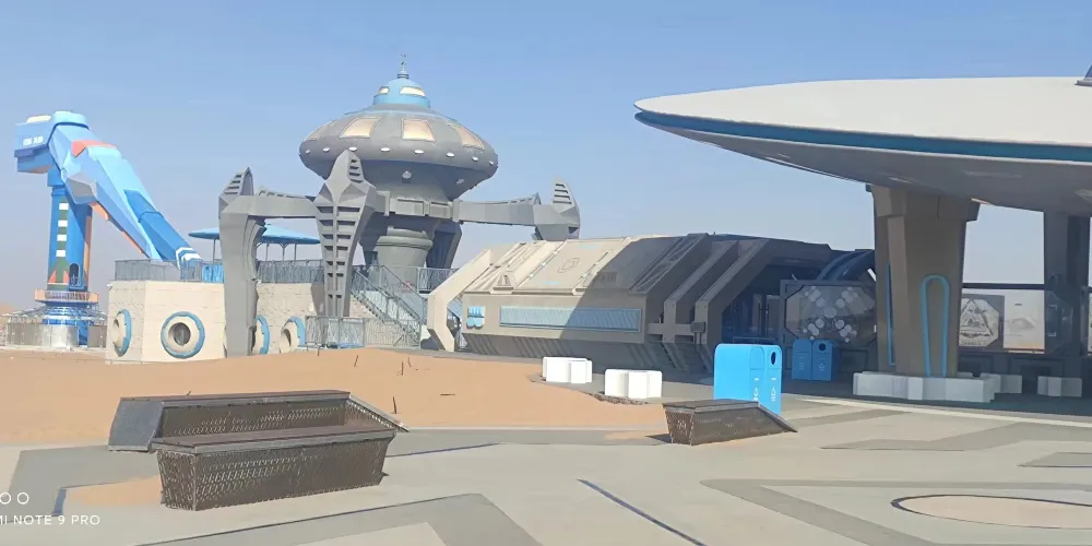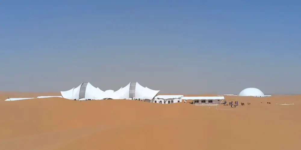 時空之門位於沙坡頭旅遊景區,其外觀造型獨特、設計新穎,就像墜入沙漠的外星來客,在茫茫沙漠中,格外醒目。