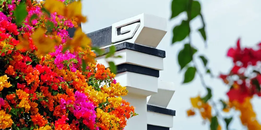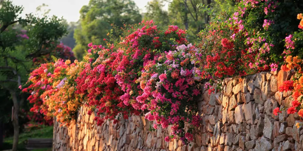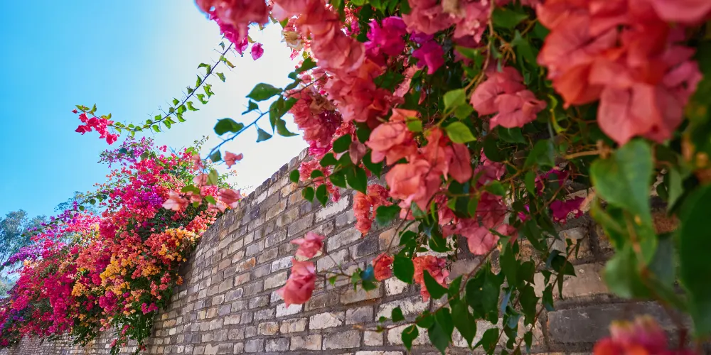 建築與花共舞:嶺南鑊耳牆、鏤空花窗、青磚黛瓦掩映於三角梅花海之中,古典庭院與自然野趣碰撞出獨特美學。推薦打卡「曲廊煙霞」——百米拱廊被三角梅完全覆蓋,行走其間如穿梭時空隧道。