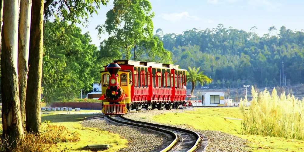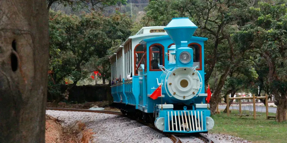 復古蒸汽火車造型的環線觀光車,穿梭於花田與森林之間,全程約25分鐘,帶您輕鬆遊覽核心景觀區。