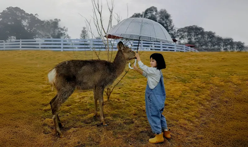 ▲與梅花鹿親密互動
