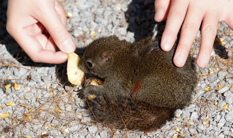 ▲和松鼠近距離互動