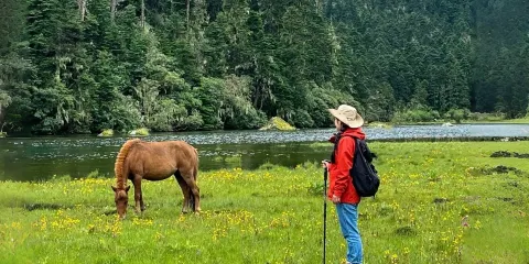 無底湖藏語意為「沃迪措」。位於迪隆雪山腹地海拔約3800米處,由兩個高原湖組成,迪隆雪山位於香格里拉格咱鄉,屬於中甸大雪山山脈,主峰海拔約5004米,4000米以上山峰有近百座。迪隆雪山動植物種類繁多,高山花卉爭奇鬥艷,擁有40多個高山湖泊,湖水清澈無比。
