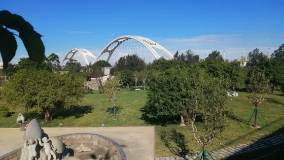 海蚌公園面向台灣海峽,沙灘還算乾淨。公園另外還建設有主題公園一處,主題公園內有各類海蚌造型的雕像群及美人魚石像供遊客遊覽,還有設計奇特造型可愛的石凳給你提供一個休息處。