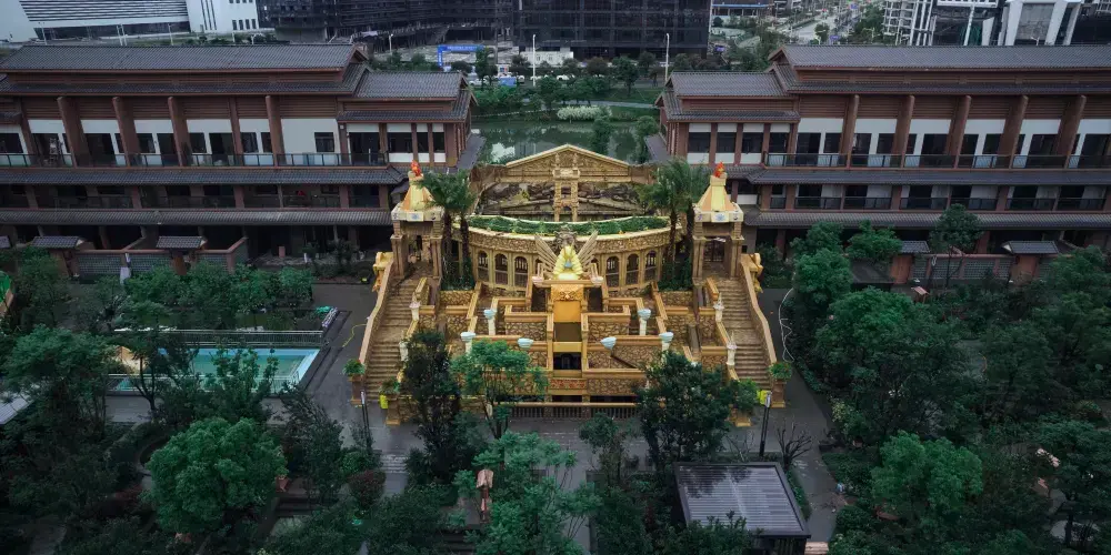 度假村坐落於福州市濱海新城核心區域,項目與濱海新城CBD城市綜合體(華潤萬象城與金茂覽秀城)幾步之遙,與6號線地鐵口金濱路站隔路相望,盡享得天獨厚的區位優勢。總建築面積2.9萬平方米,總投資2.3億元,融温泉度假酒店、海洋温泉泡湯、室內水樂園、加勒比水世界、空中螺旋滑道、亞特蘭蒂斯海底世界等區域於一體,配套温泉湯屋、客房及別墅套房共207間,可容納遊客約2500人。