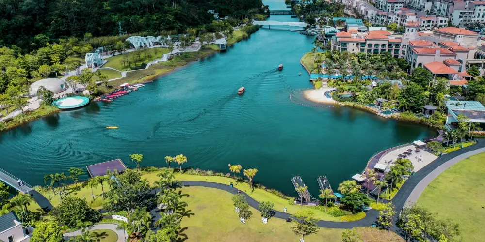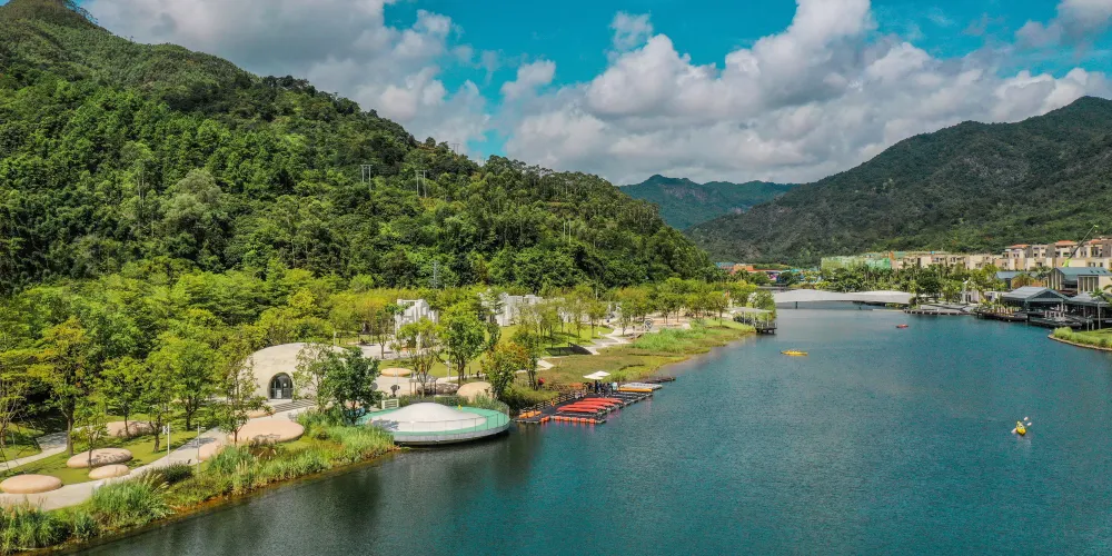 春沐源小鎮集酒店、餐飲、運動、休閑,藝文和教育等於一體,裏面有多個遊玩項目和景點,小鎮內的森林覆蓋率約為95%,背靠大山,附近有河谷,景色非常美。