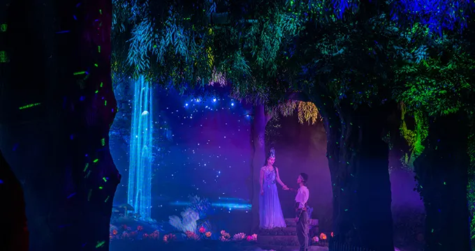 是以九寨溝神話故事《達戈和色嫫的傳説》為藍本創作的國內第一個魔幻現實情景體驗戲劇,通過聲光電等科技手段讓觀眾彷彿親臨角色所處的場景,和演員一道進入魔幻世界。一萬年前,山神轉世的勇敢少年達戈與山中守護神色嫫相愛,他們和青鹿一起護佑着這一方美好的土地。