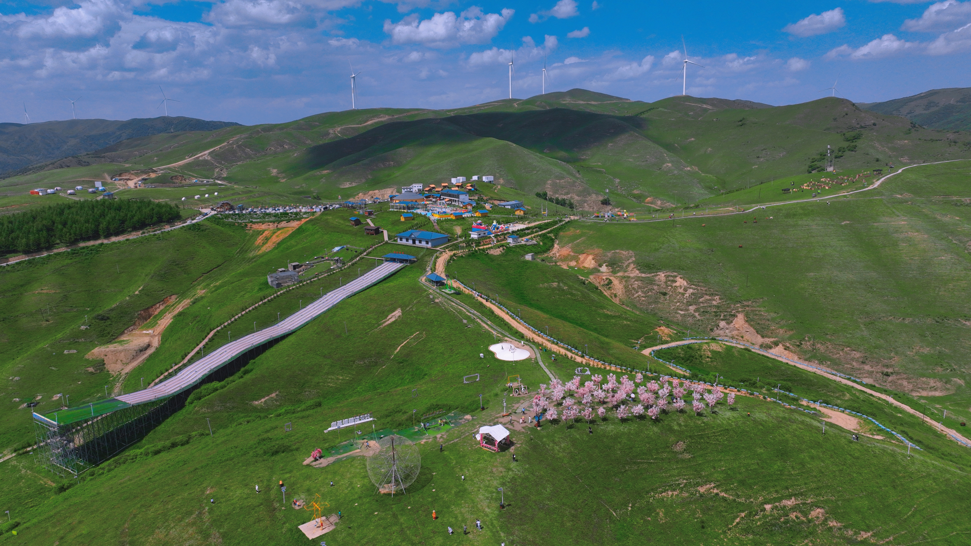 泱泱中華,萬古江河,如日之升,如月之恆。秦朝在浩渺歷史星河中尤為璀璨,一掃六合,天下統。這一切的榮華,離不開秦國的開創者、首位君主--秦非子。秦非子因極善養馬,為周王室養馬有功,獲封奏地,開啟秦國的傳奇歷史.而天水市張家川回族自治縣平安鄉東部美麗豐茂的平安草原,就屬於秦非子牧馬山癲,馬背崛起的故地。 平安草原以高山草甸為主,融合峽谷、草原、山澗等多種自然景觀。這裡有天然林2000多畝,草山6萬餘畝,是張家川縣僅有的淺灘草坪保護區。這裡有貓娃山、老虎山、梘樺嶺、磨石峽、砂石巷、石圈子樑等多個歷史悠久,風景獨秀的景點。這裏氣候涼爽,風景秀麗,馬莧蒿花開滿山。這裏山巒疊翠,駿馬奔馳,牛羊似珠撒滿坡。這裏風景獨好,興趣始生,動可策馬揚鞭,馬背呼嘯,靜可雅室觀綠,心曠神怡。 兩千年前這裡是歷史浸潤,故事頻生的平安草原。秦非子日夜守望,牧馬戍邊,馬背上橫掃天下,中華一統。兩千年後這裡是釋壓排鬱,縱情山水的遊樂聖地秦風園。當您踏上這片秦魂常駐之地,可以多種娛樂項目放飛自我。 大擺錘、旋轉飛椅、碰碰車、網紅橋,讓您飛翔於天地,折返於小童;彩虹滑道讓您心跳加速,與風齊鳴;越野摩託在賽道飛馳,盡顯速度與激情;魚塘垂釣撫平躁動,萌寵樂園迴歸童心,擺拍基地留存青春,CS基地圓夢英雄;馬背疾馳帶您夢迴大秦的馬嘶長鳴,踏破河山,所向披靡。 最後,一切激情散去,有特色草原美食滿足您空虛的味蕾和胃,有靜謐舒適的民宿一掃而空您的疲憊。 秦風園以靜默的姿勢等待您的再次歸來,一如兩千年來從未停止的風和淹沒於歷史的塵埃,仍舊胸懷大志的初心不改。