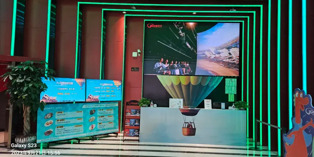 這是一部震撼寰宇的大片——《飛越中國》,該影片是在一個直徑為20米的球形屏幕上進行播放,從“天接雲濤連曉霧”到“星河一道水中央”,從“幾處早鶯爭暖樹”到“青海長雲暗雪山”,集合了地山水築人飛等情景,總跨越全國133個省市,歷時2年帶來了這部華美的《飛越中國》,讓您在飛行體驗的過程中身臨其境地感受着中國的雄偉與壯麗,強烈的視覺沖擊讓您與山川肩並肩,與雲握手言歡,一躍海底享受着與世隔絕的寧靜。