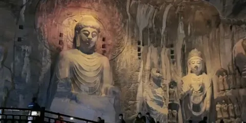 則評價盧舍那大佛是龍門石窟的精華部分,位於西山石窟的奉先寺,是按照武則天的形象塑造的。盧舍那大佛梵語意為光明普照,佛像面部豐滿圓潤,頭頂是波狀形的發紋,彎彎的眉毛下是一雙秀麗眼睛,微微凝視著前方,露出祥和的笑意,大佛整體給人端莊安祥的神態。讓人不經佩服古代的工匠,用手工就能造出巨大又精美的石像。