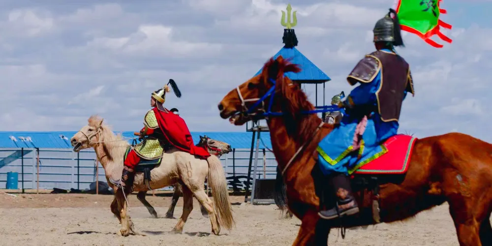 在歷史的長河中,尤其蒙古族發展中,馬及馬文化扮演着重要的角色,演繹了太多可歌可泣的感人故事。《蒙古馬·頌》是由哈薩爾遊牧部落聯合橫店影視城重點打造的一部人與馬、自然深度融合及誓死守護家園的沉浸式馬術實景演出,是一部文化元素融合大劇。通過蒙古馬頌的實景演出您可以深度的瞭解到千百年來草原的歷史變遷及民族民俗文化,劇中包括牧民轉場、草原歌舞秀、那達慕開幕式、馬術特技比賽、草原兒女的愛情、兄弟情深、守護家園等七幕情景,都尚有一種精神、一條主線貫穿其穿整部劇。那就是蒙古馬精神。
