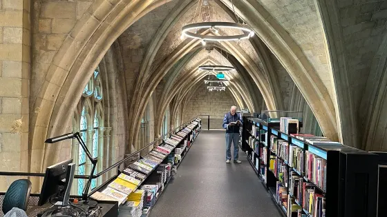 從二三樓的位置向下看,能看見咖啡廳的閱讀書桌設計成十字架造型。如此用心良苦,創新同時保持古典的設計,也成功的讓 Merkx + Girod 事務所在 2007 年獲得 Lensveld de Architect 室內設計獎,英國《衛報》評價其為世界上最漂亮的書店。這間教堂雖注入新生命,卻不失當初的莊嚴;來到此書店不管是參觀建築,買書,或享用一杯咖啡,都能在壯觀中感到平靜。