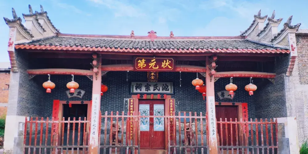 景區的形狀是個規矩的圓形大圈,主要建築都分布在大圈的外圍,中間也有景點聯通,順著步道依次遊覽即可。進入園區首先映入眼帘的是一個有點像祭壇的大圓,大圓中央是一個黑白相間的太極圖案。它的後方是客家宗祠,裡面展出了一些木雕和攝影作品,謁祖堂內收藏了百家姓氏的族譜,不過平時都是上鎖的。