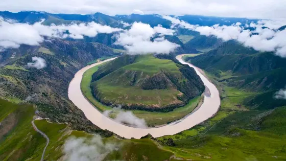 萬里長江第一灣是長江上游通天河上的一個大灣,距離縣城大約有70公里左右,雪山、草原、牛羊,還有無仙勝有仙通天河,把這裏的景色進行的恰到好處,原生態的環境就像是塞外詩畫!