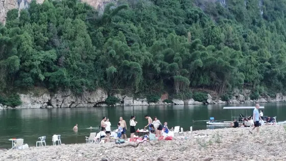 為灕江段的一個村口為,山青水秀,景色迷人,民風淳樸。